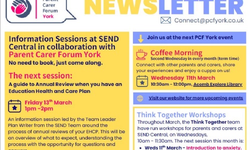 This newsletter highlights some current aspects of York's local offer and signposts to other events or opportunities for our families.
