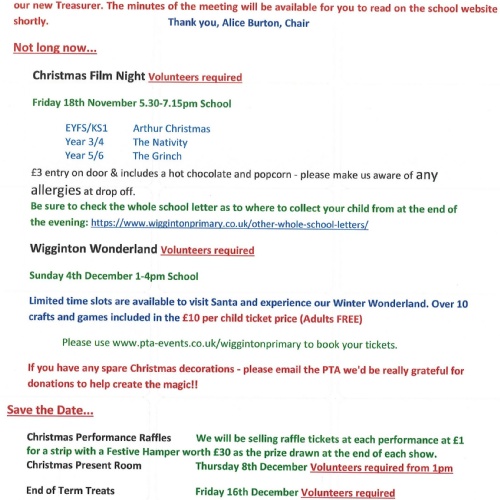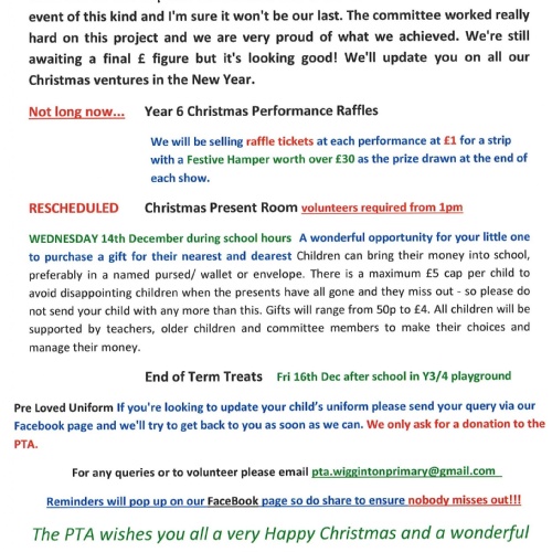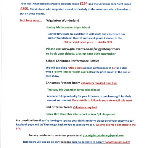 PTA Wigginton Wonderland- Sunday 4th December