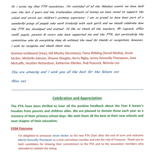 PTA Emergency General Meeting- Thursday 29th June 2023