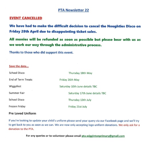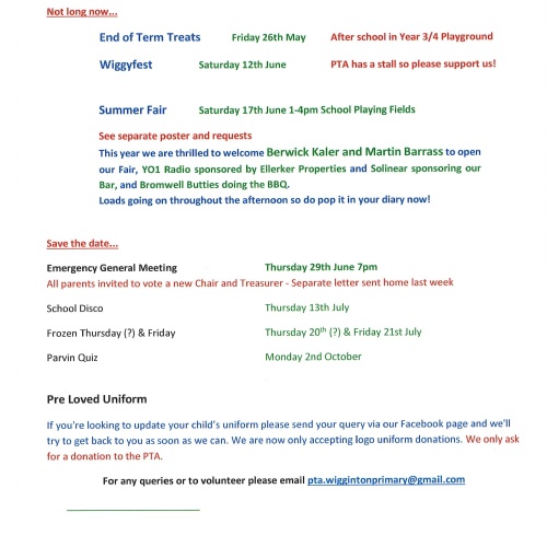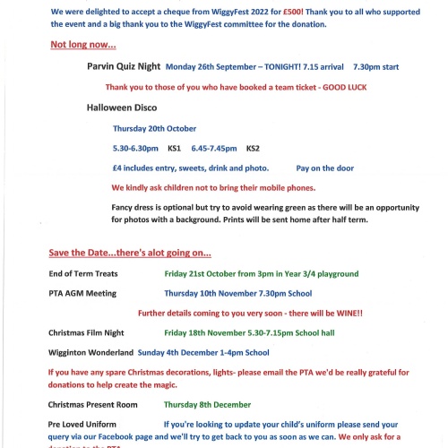 PTA Wiggyfest Saturday 4th June 2022