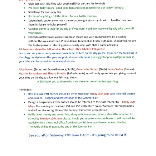PTA Summer Fair Saturday 18th June 2022